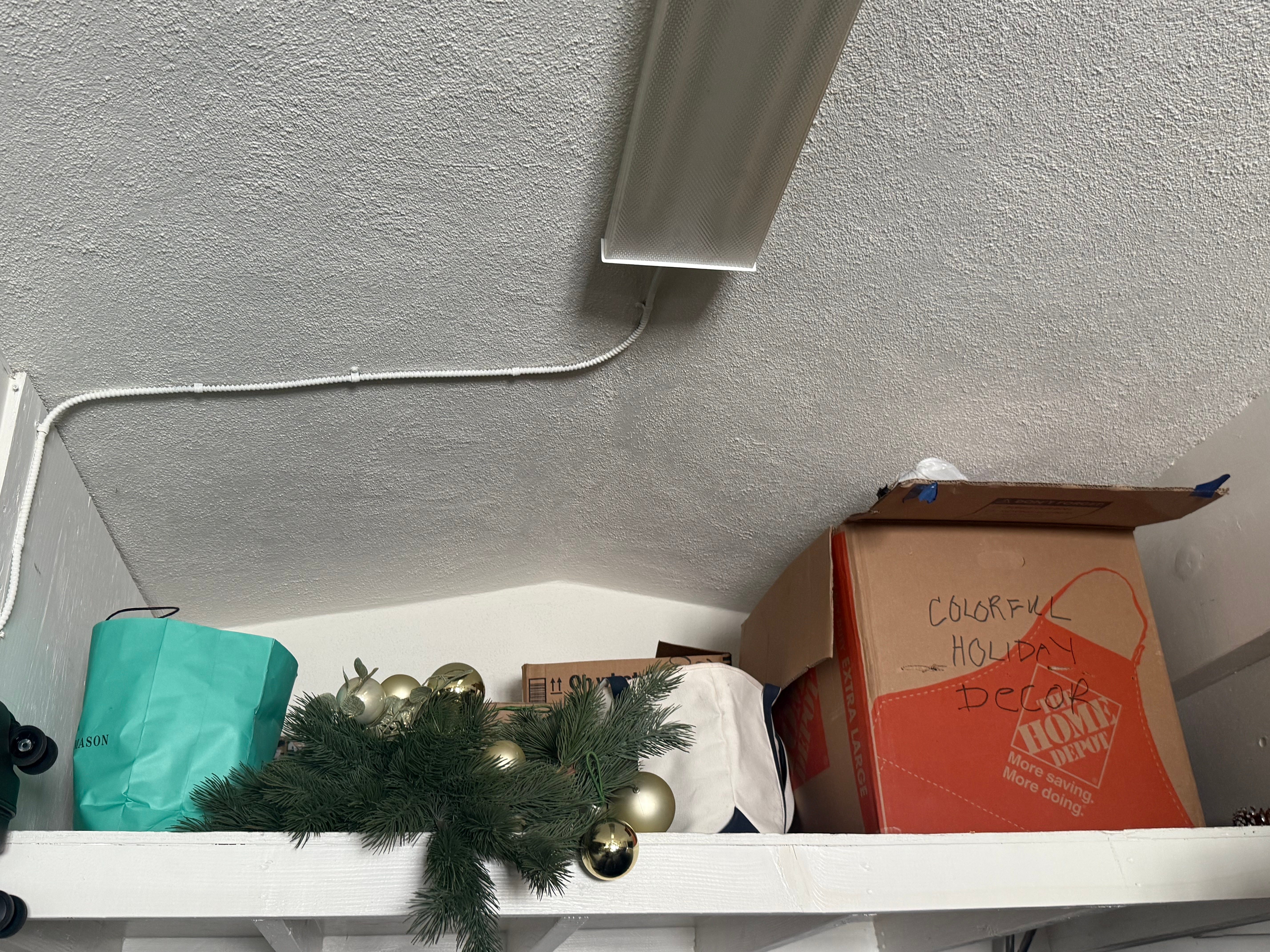 I went to the garage and, like Pizza Rat, dragged our dusty boxes containing all of our decorations into the living room.