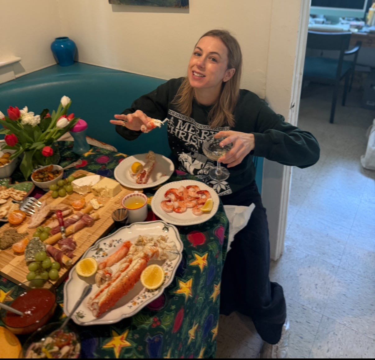 I’m married to a man who is half Jewish, so we get to do Christmas Eve at my mother-in-law’s and it’s SUPURB! She’s Italian-American so she does the Seven Fishes and goes heavy on the crab and shrimp and I slurp it up like a harp seal who broke into an estuary. Then I eat a sleeve of See’s Chocolate Peppermints and spend the night floating among the Christmas lights, resplendent in their warm glow.