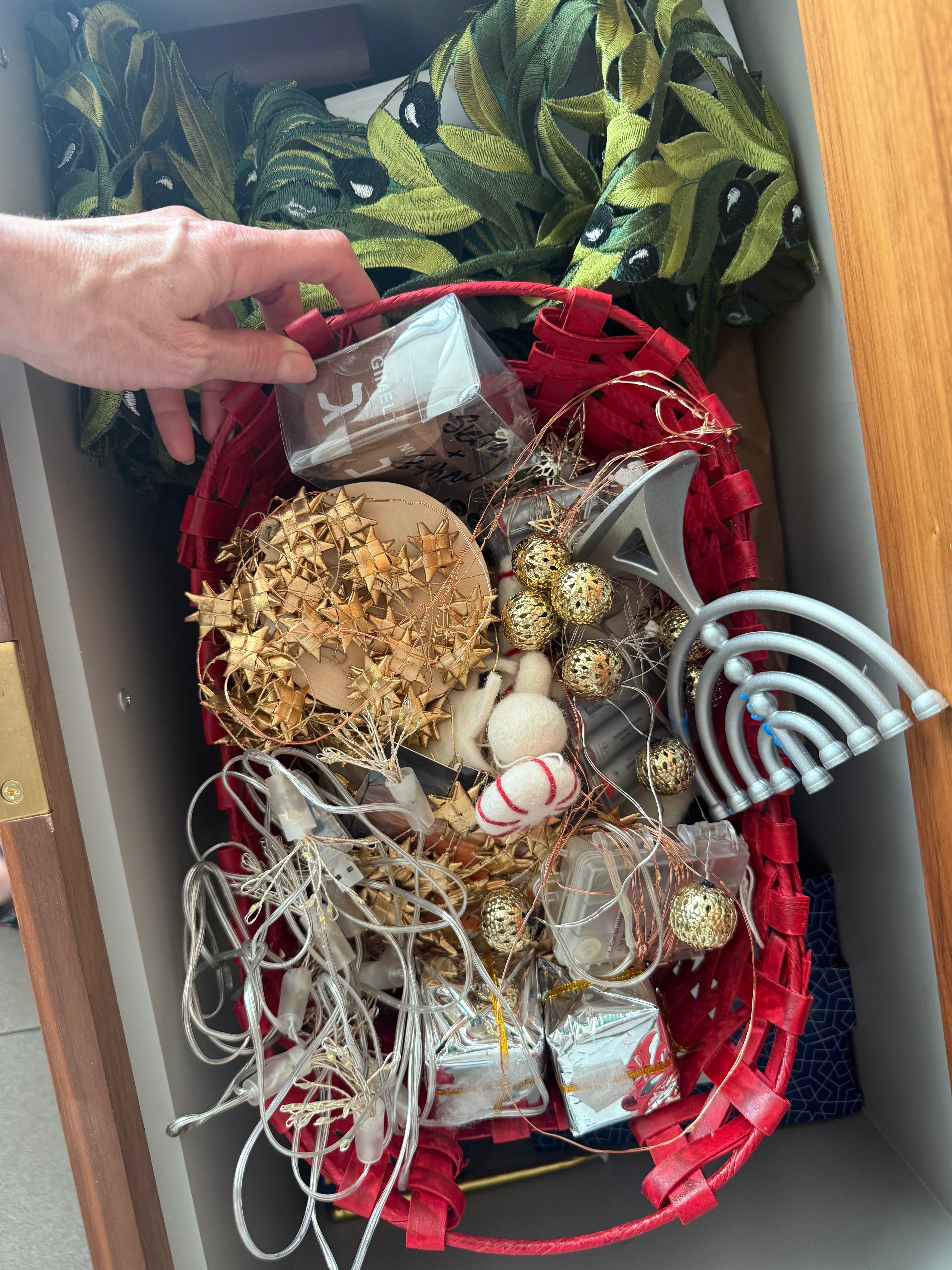 I surveyed their contents, positive whatever I had I could do with more of. I kept googling and re-googling “fun holiday decor” “non-ugly Hanukkah decor” “holiday indoor lights, festive”. Seeing the intensity in my eyes and pouring out of my thumbs onto my keyboard, my husband asked “what is it exactly that you are looking for?” That stopped me. “I don’t know, actually.” Half the calming effect of Christmas is just in the looking. Did I really need another two toned 6 foot magnolia leaf garland?